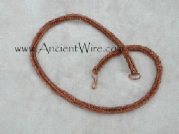 This class will teach beginning students to make intricate chains in the manner of the Vikings and other ancient cultures, without the need for heat or complicated tools. With the techniques presented, you will learn to create items like the ones found in Viking burials and treasure hoards across the Nordic countries dating from the 9th century to the late 12th century. Wire chains made in this fashion have also been discovered in the British Isles (875 AD) and in the Roman, Greek and Byzantine civilizations from the 4th century BC to the 1st century AD. Timeless items can be created that are still beautiful and wearable today. If you have needlenose pliers and wire cutters, please bring them. If you need glasses for close or small work, please bring them. The fee for the class includes the materials needed to complete the leather cord necklace. The number of students per class is limited to 10. The class lasts 2 Hours. To view this unique jewelry, please visit www.AncientWire.com/book.htm