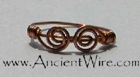 The design of this lovely adjustable double spiral ring has been found since the 4th century BCE, when the Etruscans made it in gold with a bead. There are also examples without a bead from the Celts, Romans, Saxons, and Vikings.